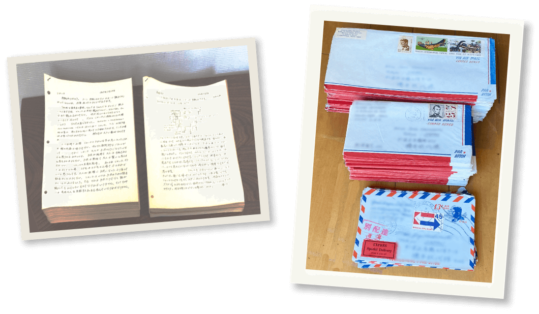 母親同士が親しく、小学校の同級生の妹であった妻となる女性と2年間の頻繁な手紙交換の後、妻は東京から、私はボストンから、ロスアンゼルスで合流して結婚。